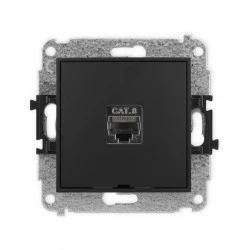 ICON Mechanizm gniazda komputerowego pojedynczego 1xRJ45, kat. 8, ekranowane, 8‑styk, bez pola opisowego czarny mat 12IGKBO‑11