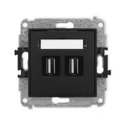 ICON Mechanizm gniazda podwójnego 2xUSB A‑A 2.0 czarny mat 12IGUSB‑2