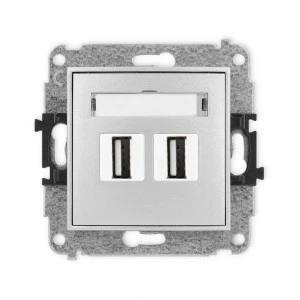 ICON Mechanizm gniazda podwójnego 2xUSB A‑A 2.0 srebrny metalik 7IGUSB‑2