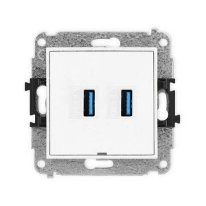 ICON Mechanizm gniazda podwójnego 2xUSB A‑A 3.0, bez pola opisowego biały mat 25IGUSBBO‑6