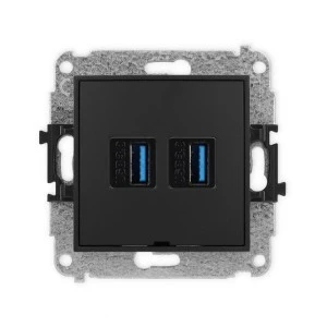 ICON Mechanizm gniazda podwójnego 2xUSB A‑A 3.0, bez pola opisowego czarny mat 12IGUSBBO‑6