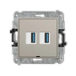 ICON Mechanizm gniazda podwójnego 2xUSB A‑A 3.0, bez pola opisowego taupe 60IGUSBBO‑6