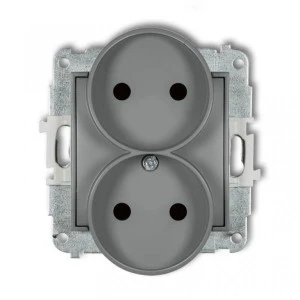 ICON Mechanizm gniazda podwójnego do ramki bez uziemienia 2x2P (przesłony torów prądowych) szary mat 27IGPR‑2p