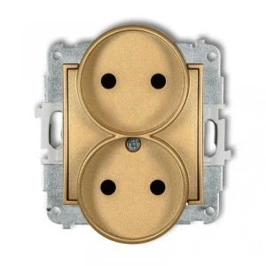 ICON Mechanizm gniazda podwójnego do ramki bez uziemienia 2x2P (przesłony torów prądowych) złoty 29IGPR‑2p