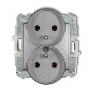 ICON Mechanizm gniazda podwójnego do ramki z uziemieniem 2x(2P+Z) (bez przesłon torów prądowych) srebrny metalik 7IGPR‑2z