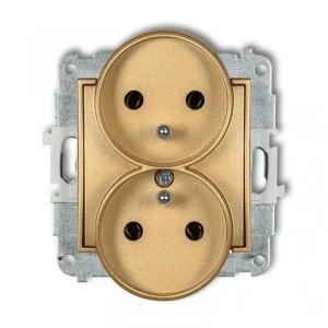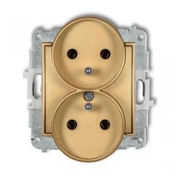 ICON Mechanizm gniazda podwójnego do ramki z uziemieniem 2x(2P+Z) (bez przesłon torów prądowych) złoty 29IGPR‑2z