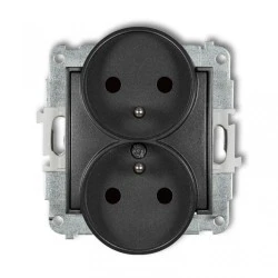 ICON Mechanizm gniazda podwójnego do ramki z uziemieniem 2x(2P+Z) (przesłony torów prądowych) czarny mat 12IGPR-2zp