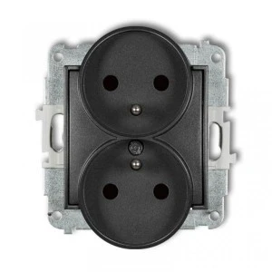 ICON Mechanizm gniazda podwójnego do ramki z uziemieniem 2x(2P+Z) (przesłony torów prądowych) grafitowy 11IGPR‑2zp