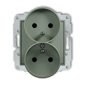 ICON Mechanizm gniazda podwójnego do ramki z uziemieniem 2x(2P+Z) (przesłony torów prądowych) szałwiowy 61IGPR‑2zp