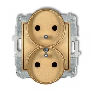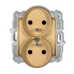 ICON Mechanizm gniazda podwójnego do ramki z uziemieniem 2x(2P+Z) (przesłony torów prądowych) złoty 29IGPR‑2zp