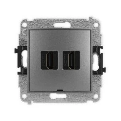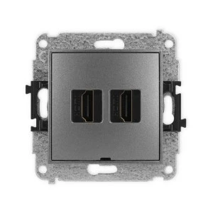 ICON Mechanizm gniazda podwójnego HDMI 2.0, bez pola opisowego grafitowy 11IHDMIBO‑4