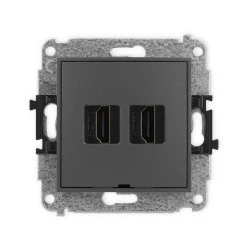 ICON Mechanizm gniazda podwójnego HDMI 2.0, bez pola opisowego grafitowy mat 28IHDMIBO‑4