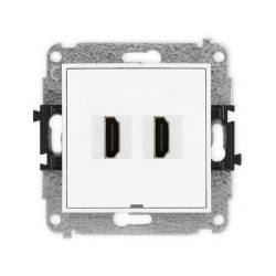 ICON Mechanizm gniazda podwójnego HDMI 2.1, 8K, bez pola opisowego biały mat 25IHDMIBO‑6