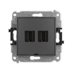 ICON Mechanizm gniazda podwójnego HDMI 2.1, 8K, bez pola opisowego grafitowy mat 28IHDMIBO‑6