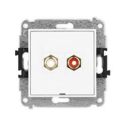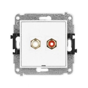 ICON Mechanizm gniazda podwójnego RCA, bez pola opisowego (typu cinch ‑ biały i czerwony, pozłacany) biały mat 25IGRCABO‑2