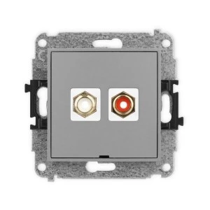 ICON Mechanizm gniazda podwójnego RCA, bez pola opisowego (typu cinch ‑ biały i czerwony, pozłacany) szary mat 27IGRCABO‑2