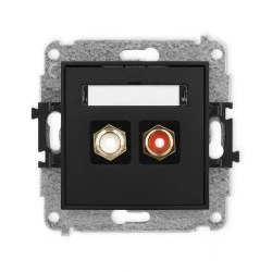 ICON Mechanizm gniazda podwójnego RCA (typu cinch ‑ biały i czerwony, pozłacany) czarny mat 12IGRCA‑2