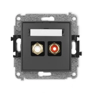 ICON Mechanizm gniazda podwójnego RCA (typu cinch ‑ biały i czerwony, pozłacany) grafitowy mat 28IGRCA‑2