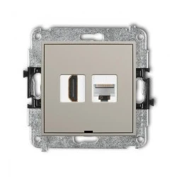 ICON Mechanizm gniazda pojedynczego HDMI 2.0, 4K + gniazda komp. poj. 1xRJ45, kat. 5e, 8‑stykowy, bez opisu taupe 60IGHKBO