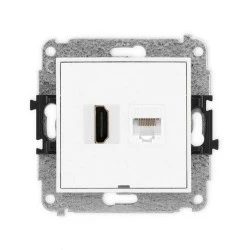 ICON Mechanizm gniazda pojedynczego HDMI 2.0 + gniazda komp. poj. 1xRJ45, kat. 5e, 8‑styk, bez pola opisowego biały mat 25IGHKBO