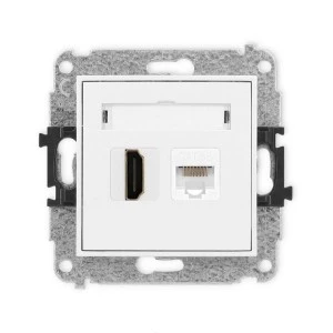 ICON Mechanizm gniazda pojedynczego HDMI 2.0 + gniazda komp. poj. 1xRJ45, kat. 5e, 8‑stykowy biały IGHK