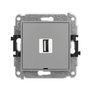 ICON Mechanizm gniazda pojedynczego USB A‑A 2.0, bez pola opisowego szary mat 27IGUSBBO‑1