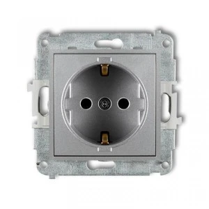 ICON Mechanizm gniazda pojedynczego z uziemieniem SCHUKO 2P+Z (przesłony torów prądowych) srebrny metalik 7IGP‑1sp
