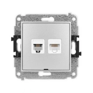 ICON Mechanizm gniazda telefonicznego 1xRJ11 + komp. 1xRJ45, kat. 5e, 8‑styk, beznarzędziowe, bez opisu srebrny metalik 7IGTKBO