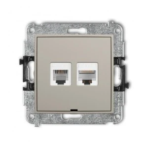 ICON Mechanizm gniazda telefonicznego 1xRJ11 + komputerowego 1xRJ45, kat. 5e 8‑stykowy, beznarzędziowe, bez opisu taupe 60IGTKBO