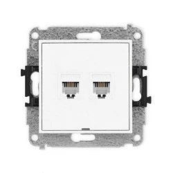 ICON Mechanizm gniazda telefonicznego podwójnego 2xRJ11, 4‑stykowy, beznarzędziowe, bez pola opisowego biały IGTBO‑2