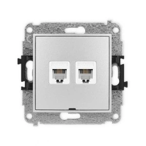 ICON Mechanizm gniazda telefonicznego podwójnego 2xRJ11, 4‑stykowy, beznarzędziowe, bez pola opisowego srebrny metalik 7IGTBO‑2