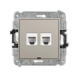 ICON Mechanizm gniazda telefonicznego podwójnego 2xRJ11, 4‑stykowy, beznarzędziowe, bez pola opisowego taupe 60IGTBO‑2