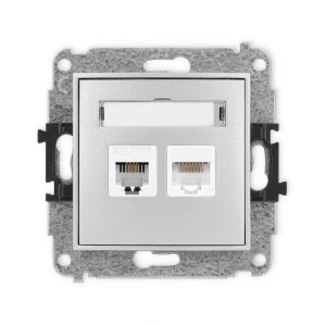 ICON Mechanizm gniazda telefonicznego poj. 1xRJ11 + komputerowego 1xRJ45, kat. 5e, 8‑styk, beznarzędziowe srebrny metalik 7IGTK