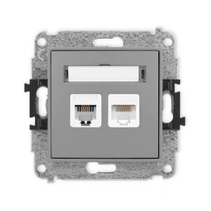 ICON Mechanizm gniazda telefonicznego poj. 1xRJ11 + komputerowego poj. 1xRJ45, kat. 5e, 8‑styk, beznarzędziowe szary mat 27IGTK