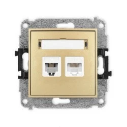 ICON Mechanizm gniazda telefonicznego poj. 1xRJ11 + komputerowego poj. 1xRJ45, kat. 5e, 8‑styk, beznarzędziowe złoty 29IGTK