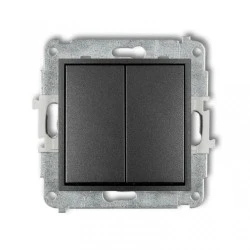 ICON Mechanizm łącznika jednobiegunowego ze schodowym (dwa klawisze bez piktogramów, osobne zasilanie) grafitowy 11IWP‑10.21
