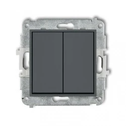 ICON Mechanizm łącznika jednobiegunowego ze schodowym (dwa klawisze bez piktogramów wspólne zasilanie) grafitowy mat 28IWP‑10.11