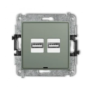 ICON Mechanizm ładowarki USB podwójnej 2xUSB A, 15,5W max., 5V, 3.1A, bez pola opisowego szałwiowy 61ICUSBBO‑6