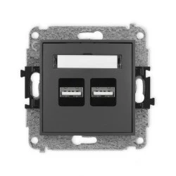 ICON Mechanizm ładowarki USB podwójnej, 5V, 3.1A grafitowy mat 28ICUSB‑6