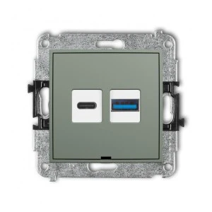 ICON Mechanizm ładowarki USB podwójnej USB C + USB A, 20W max., bez pola opisowego szałwiowy 61ICUSBBO‑8