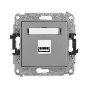 ICON Mechanizm ładowarki USB pojedynczej, 5V, 2A szary mat 27ICUSB‑3