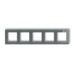 ICON Ramka uniwersalna pięciokrotna kwadratowa - efekt szkła (ramka: grafitowa spód: biały) 28-0-IRSK-5 jest zaawansowanym produktem przeznaczonym do estetycznej i funkcjonalnej organizacji elementów elektrycznych, takich jak gniazdka czy przełączniki, w twoim domu czy biurze. Produkt służy do montażu na ścianie i pozwala na uporządkowanie do pięciu elementów elektrycznych - może to być kombinacja gniazdek, przełączników, regulatorów intensywności światła.
