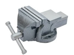 Wkładki szczękowe, hartowane indukcyjnie i ryflowane gwarantują pewne i bezpieczne mocowanie Imadło ze stałą podstawą wykonane z mocnego żeliwa zapewnia trwałość narzędzia