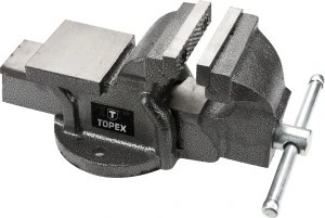 Imadło ślusarskie TOPEX (nr ref. 07A107) o dużej sile nacisku szczęk o długości 75 mm. Przeznaczone do mocowania przedmiotów poddawanych obróbce ręcznej lub maszynowej. Solidna, żeliwna konstrukcja z kowadłem i hartowanym gwintem umożliwia wykorzystanie imadła podczas ciężkich prac. Marka TOPEX skierowana jest do majsterkowiczów.