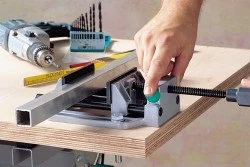 - stalowe szczęki z poziomym i pionowym rowkiem V do pewnego mocowania przedmiotów okrągłych
