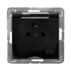 IMPRESJA Gniazdo bryzgoszczelne z uziemieniem IP‑44 wieczko przezroczyste czarny metalik GPH‑1YZ/m/33/d
