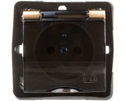Simon 54 Gniazdo bryzgoszczelne z/u IP44 z klapką transparentną złoty mat DGZ1BZ.01/44A