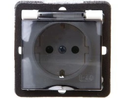 AS Gniazdo bryzgoszczelne z/u Schuko IP44 klapka przezroczysta ecru GPH-1GS/m/27/d