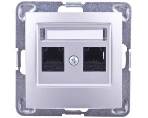 IMPRESJA Gniazdo komputerowe podwójne RJ45 kat.5e MMC srebrne GPK‑2Y/K/m/18