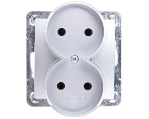 LOGI Gniazdo podwójne 2x2P kompletne śrubowe 16A 250V Srebrny 25214